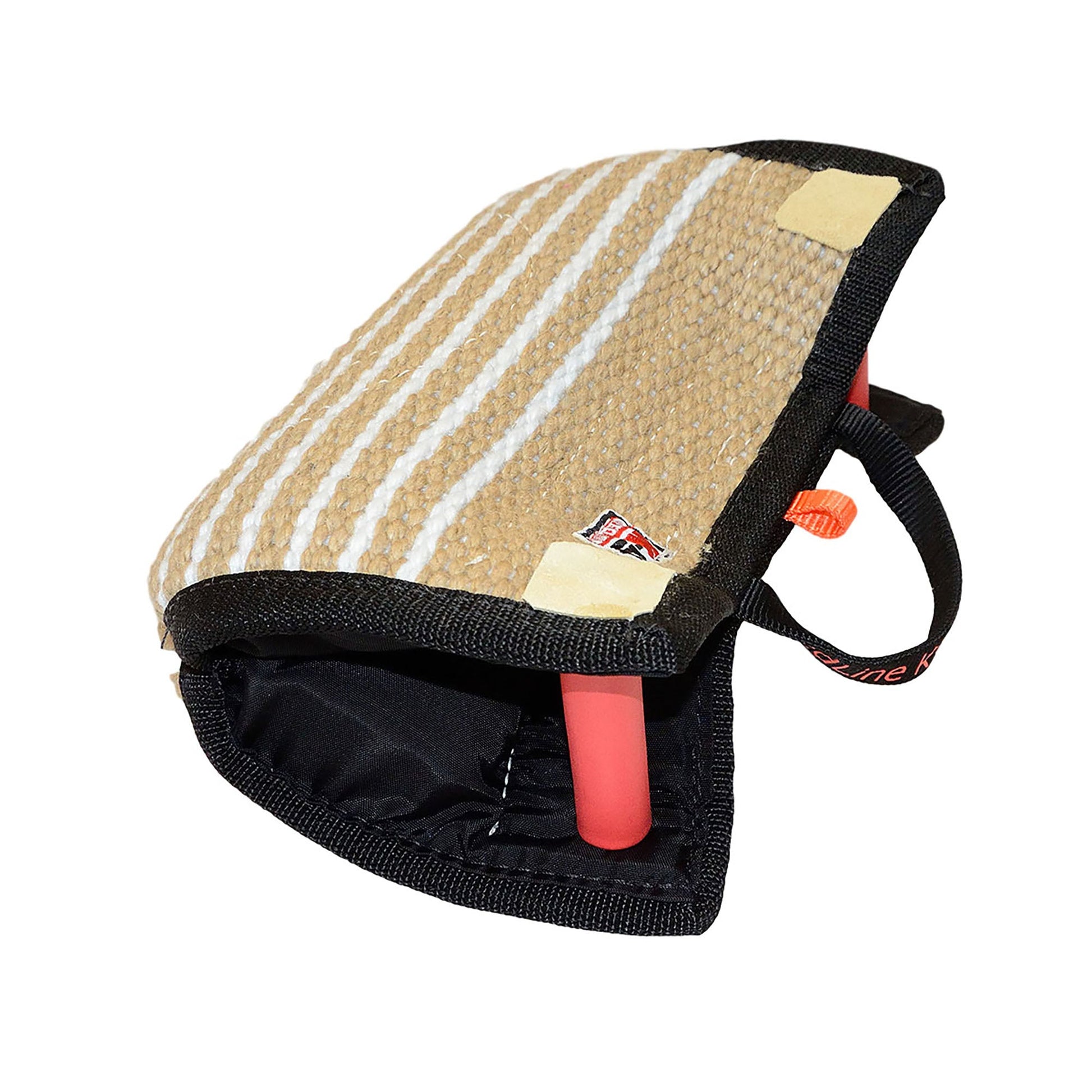 The Redline K-9 Jute Bite Wedge With Hidden Handles is an excellent targeting and grip building toy. Made with the same high quality Jute we make sleeve covers with and finished with two hidden handles. The handle design makes it easy to give a correct presentation to the dog every time while preventing injury to your hands. This wedge is not too hard for a young dog, but firm enough to be used when stepping back and re-teaching targeting.