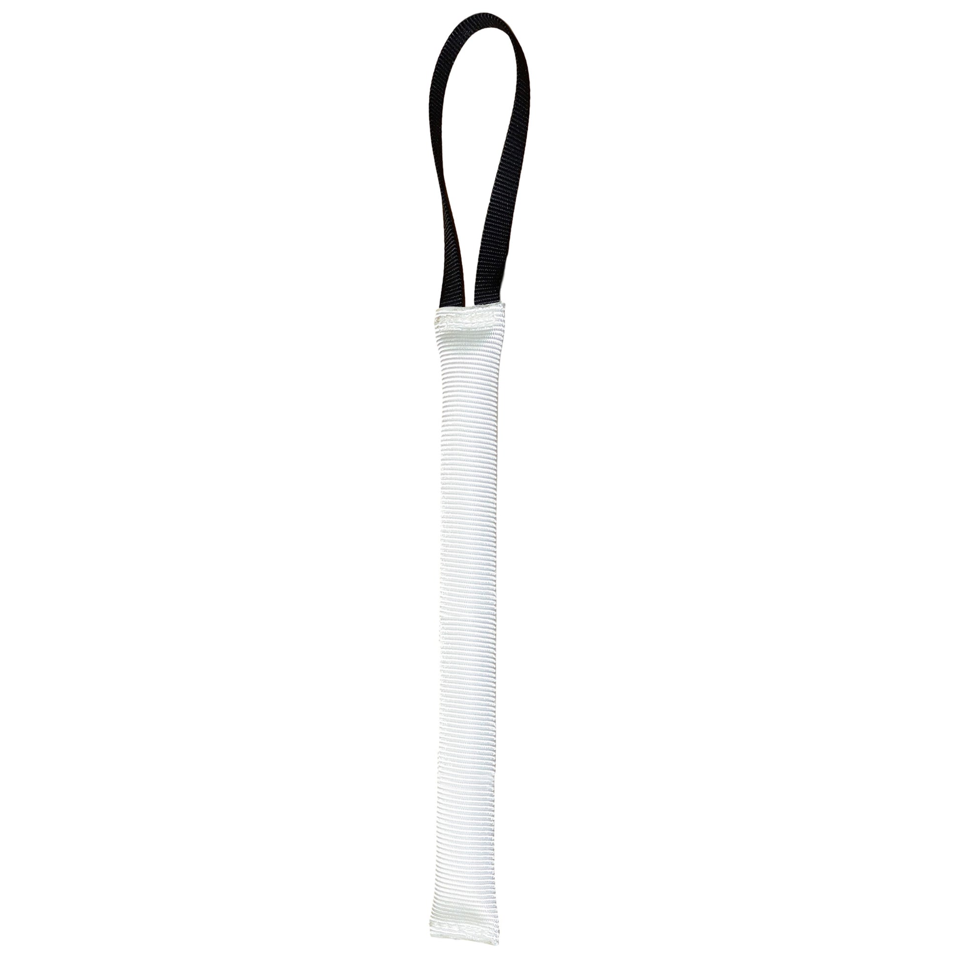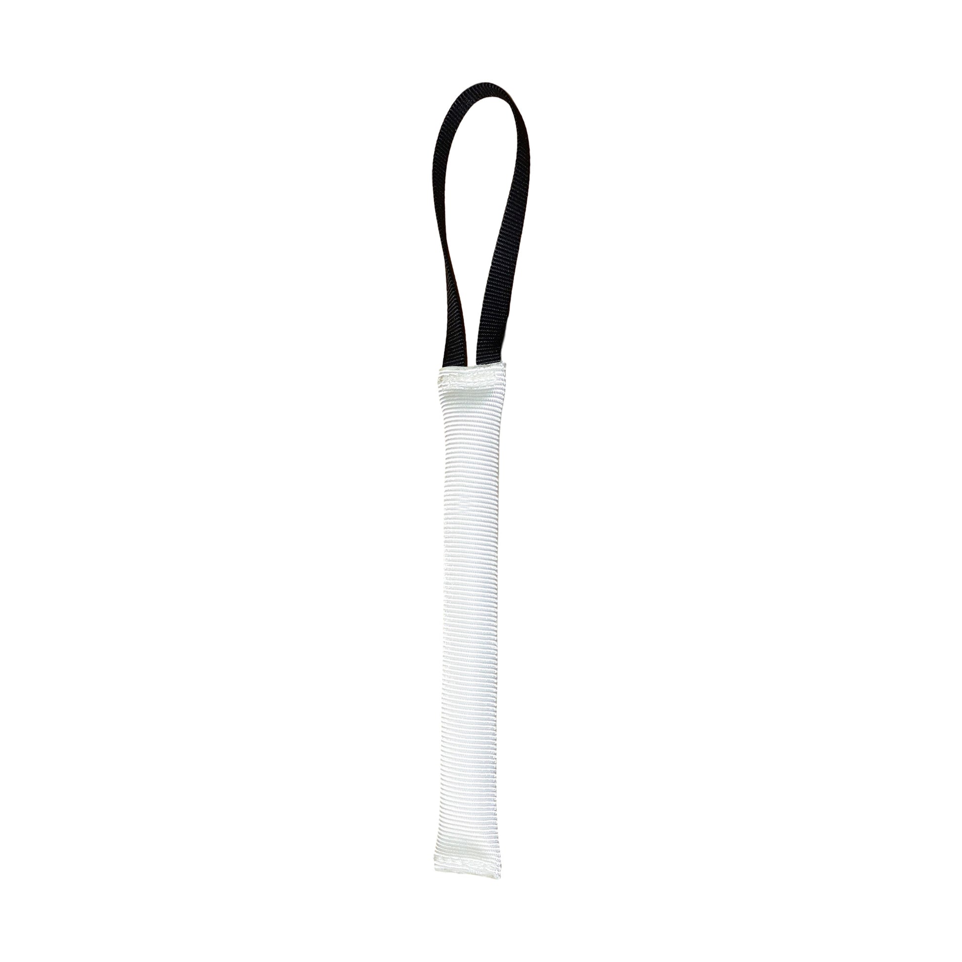 Redline K-9 White Floating Fire Hose Tug Toy is made from a durable synthetic indoor fire hose material. Indoor fire hose is a little softer than the outdoor yellow hose used in our wider yellow tug toys but still provides an excellent surface for biting.